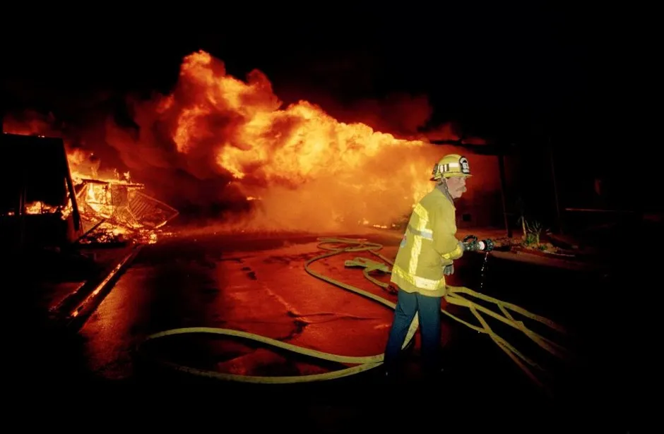 洛杉矶附近的一名消防员在1994年诺斯里奇地震后寻找水源。美联社科学家们不知道加利福尼亚下一个大地震何时会发生,但他们几乎知道关于它的一切,潜在的后果令人恐惧:无能的救援服务、广泛的火灾,以及数月没有新鲜水源。