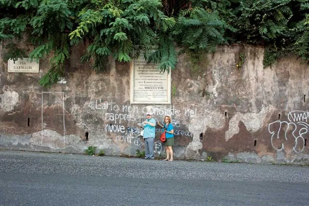 沿着加里波第大道,从贾尼科洛山到特拉斯提弗列区。