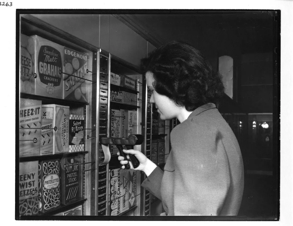 这位两次成为百万富翁的桑德斯在四年后去世,个人遗产为仅两千美元——当然,还有他下一个伟大商店的计划。Foodelectric将完全消除收银员的需求,使用一种原始计算机。