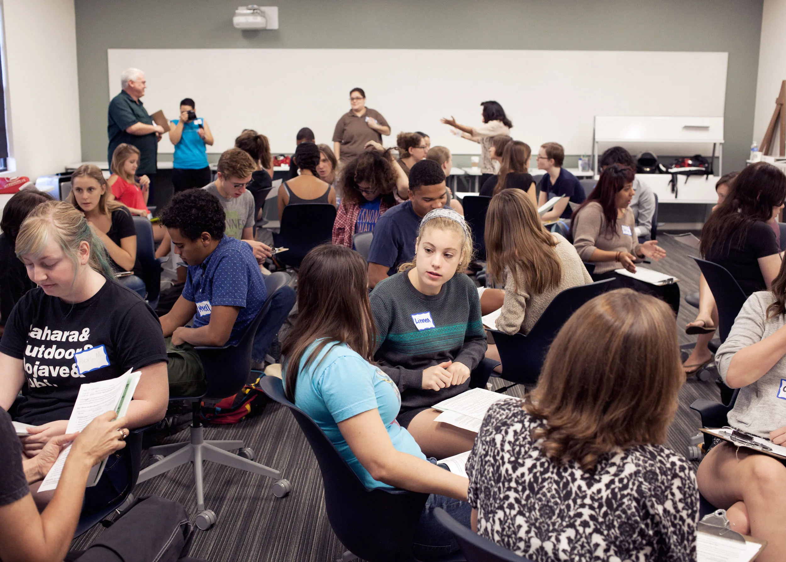 计划生育组织的志愿者于2014年10月4日在洛杉矶接受培训。摄影师:约翰·弗朗西斯·彼得斯/彭博社拉库尔在房间后面监控着惠提尔的培训会议,手中拿着咖啡杯,身穿法兰绒衬衫、牛仔裤和牛仔靴,安静而偶尔显得不安。他手中拿着一叠表格,准备在下午分发给志愿者,询问他们的个人堕胎历史。(每位志愿者都被分配了一个独特的识别号码,以便匿名测量曾堕胎和未堕胎者的不同影响。)此时,志愿者们刚刚在外面度过了三个小时,经历了他们被警告可能会情感强烈的接触,既鼓舞人心又令人失望。组织者用披萨和激励讲话欢迎他们回到惠提尔。“总会有一两个运气不好的人,遇到那个让他们沮丧的选民,”组织者史蒂夫·德林解释道。