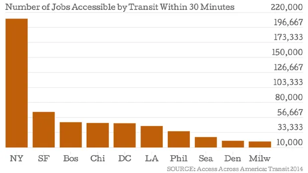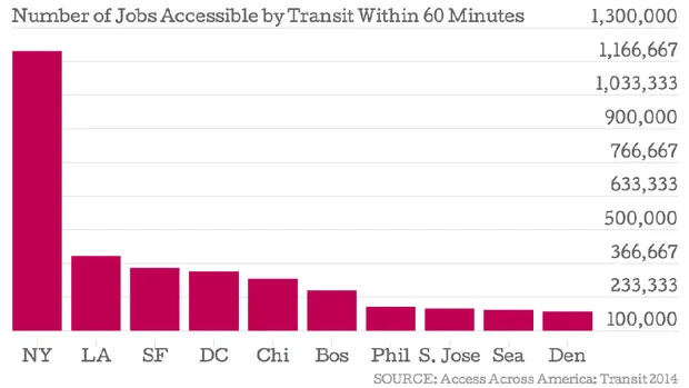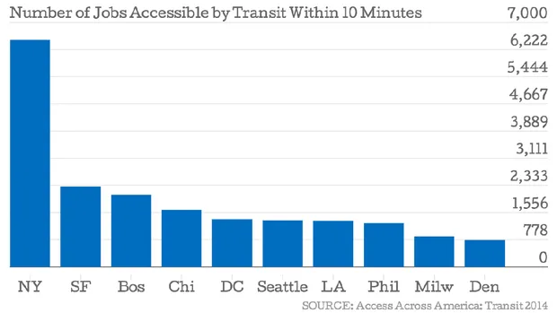 所有排名都有其局限性,但在“美国通达性:2014年交通”中,这些缺陷似乎可以通过更多的时间和数据轻松解决。例如,了解早高峰时段以外的交通通勤可达性,以及了解除了工作之外的其他地方的可达性,会是很好的。排名还以整体的方式查看工作;按行业和工资或薪水进行细分可能会为我们提供关于交通公平的深刻见解。