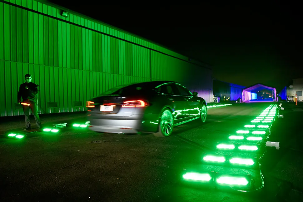 马斯克穿着一件长长的黑色皮夹克,指着机场的跑道,说活动上的每个人都可以试驾新车。人们排起了数百人的队伍,进入汽车,快速穿过一个灯光隧道。特斯拉以前从未举办过这种类型的活动。