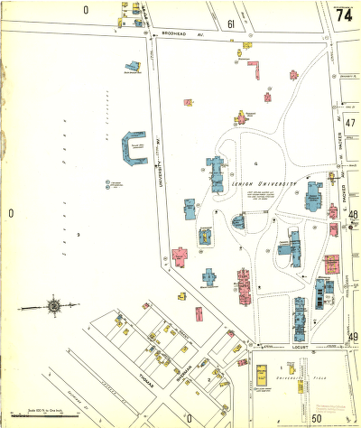宾夕法尼亚州贝ethlehem钢铁公司的大规模地图,1912年。国会图书馆卡普兰说,从地图中得出的社会人口假设可以通过其他历史来源进行确认或排除。在他的课堂上,他将地图与人口普查数据结合起来。