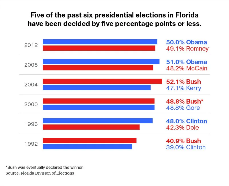 佛罗里达州也是总统选举中最大的战场,因为过去六次选举中有五次是以五个百分点或更少的差距决定的。而下一任州长将选择负责投票的国务卿。