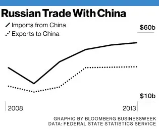 “现在普京已经转向东方,远离西方,中国正在从俄罗斯的需求中获取最大利润,”莫斯科独立政治分析师玛莎·利普曼说,她与前美国大使迈克尔·麦克福尔共同撰写了一项关于普京的研究。中国没有浪费时间填补美国和欧洲债务市场关闭对俄罗斯最大借款人造成的空白。由李克强总理领导的代表团于10月13日在莫斯科签署了一系列协议。其中包括在三年内以人民币兑换250亿美元的俄罗斯卢布的协议、一项保护在俄罗斯和中国运营的公司的利润不被双重征税的条约,以及在卫星导航系统和高速铁路方面的合作。为了促进贸易,中国进出口银行同意向国有的VTB集团和俄罗斯发展银行Vnesheconombank提供信贷额度,并与俄罗斯农业银行达成贸易融资协议。