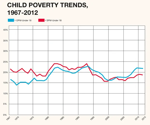 但它们真的像他观察到的那样命运多舛吗?随后的政府援助项目又如何——它们的有效性如何?这些问题的答案在于人口普查局用来衡量贫困的一种新的(或较新的)指标。