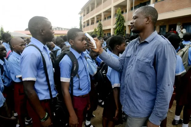 2014年10月8日,拉各斯的一所学校对学生进行体温检测摄影:Puis Utomi Ekpei/法新社通过Getty Images一名疑似感染埃博拉的发热患者于7月17日离开利比里亚的一家医院,忽视了那里的医生建议。三天后,他乘坐商业航班前往尼日利亚拉各斯,非洲人口最多的城市,在那里因发热、腹泻和呕吐住院。他告诉拉各斯的医生,他没有接触过埃博拉。