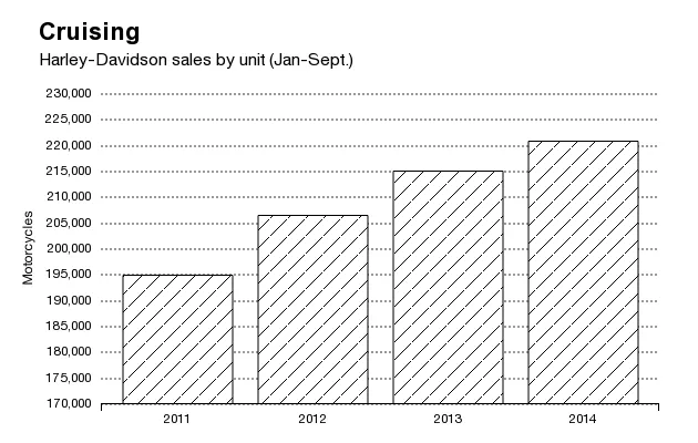因此,哈雷周二早上的财务更新可以被视为全球经济的好消息,因为它表示世界各地的人们正在购买更多的摩托车。该公司在2014年前九个月的出货量增长了5%——部分得益于一系列新车型的推出。