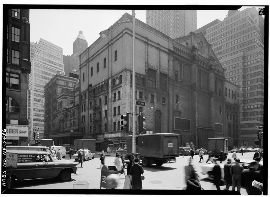 从西北方向看,7大道和西40街,1966年5月。LOC, HABS/Jack Boucher