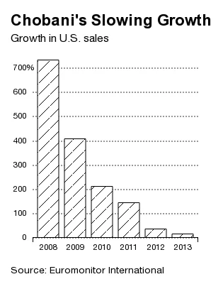 Chobani 正在努力扩大其市场,因为它逐渐成熟,销售增长从之前的快速增长放缓。Euromonitor International 预计 Chobani 在美国的销售增长今年将达到约 11%,低于 2011 年的约 142%。