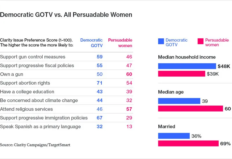 民主党在这一周期开始时有415,000个优先投票目标,需要动员至少三分之二的人才能保持布雷利的竞争力。民主党正在努力动员的选民更年轻,女性比例更高,且比他们努力说服的选民更不可能已婚。然而,他们的经济水平也更高,家庭中位收入为48,000美元。(比说服目标的中位数高出7,000美元。)即使在白人占主导的爱荷华州,少数族裔对布雷利的投票动员工作也至关重要:他的投票目标中有7%是非裔美国人、拉丁裔或亚裔。