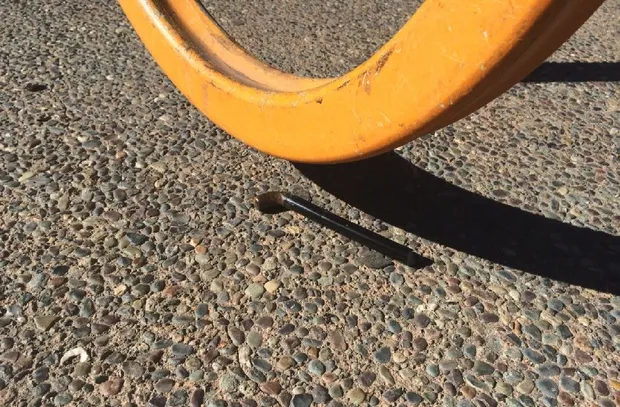 前往奥克兰的麦克阿瑟BART车站,你会发现地面上满是悲伤的U锁残骸。比如说,这里有一个金属椒盐卷饼: