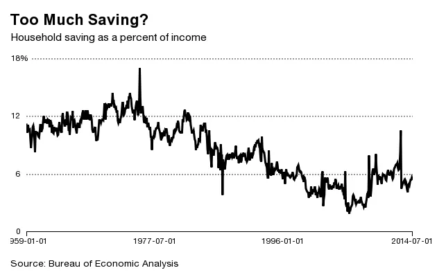 并不是每个人都同意刺激消费是长期增长的策略。但假设这是正确的。萨默斯认为,从总体上看,我们的消费太少(因此储蓄太多)。但目前的储蓄低于历史平均水平——在增长更多和不平等较少的时候,储蓄更高。