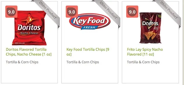 但其中一个好处是数据库显示了各个类别内的广泛变化,例如玉米片: