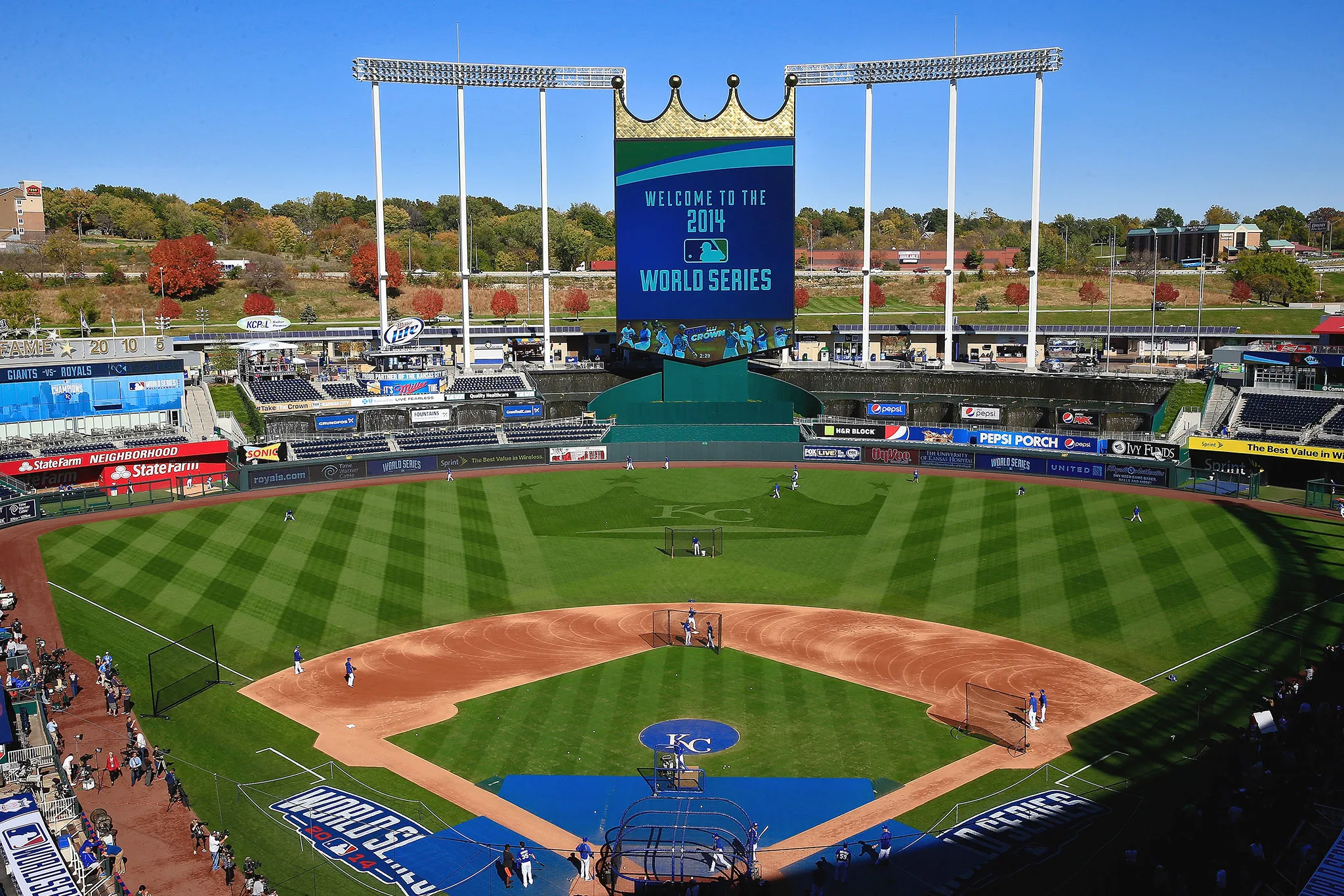 在堪萨斯城,他们庆祝的是不同的东西。作为一个在农田国家伊利诺伊州长大的人,你永远不会听到我使用“飞越”这个词,但在一个大多数国家不够关心的地方,固有的谦逊在这里生长,这里有一些空间可以伸展。考夫曼体育场现在是美国职业棒球大联盟第六古老的体育场,即使在最近的翻新之后,它仍然保留着1973年建造的建筑的过时魅力。它似乎比其他公园更坚固,拥有一个过度生长的次级联赛体育场的温暖感觉。事实上,大部分翻新工程致力于使这个地方更适合家庭;在中场有一个令人惊讶的大儿童游乐场,皇家队的球迷对此赞不绝口,至少在常规赛期间,当你不需要支付世界系列赛的价格时,比赛也不需要过于关注。公园内外有很多空间。每个人都有活动的空间。