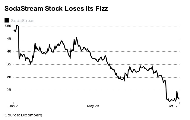 现在SodaStream看起来像是那个可怜的。根据周三公布的结果,该公司的收入在第三季度下降了12.9%,美洲的收入暴跌了41%。该股票已经自由下跌了几个月: