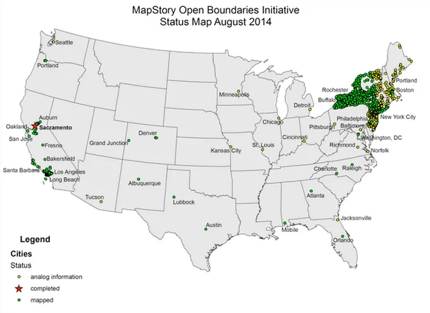 绘制整个世界的地图可能还需要一段时间。但最近的发展——例如2013年加利福尼亚州最高法院的裁决,认为 加利福尼亚州政府的GIS数据库是公共记录——使得数据变得越来越可获取。MapStory是一个示例库,展示了这些数据可以用于的各种用途,从课堂作业到深度历史项目。