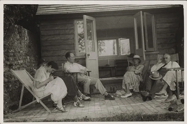安吉丽卡·加尔内特、瓦妮莎·贝尔、克莱夫·贝尔、弗吉尼亚·伍尔夫和凯恩斯在1935年伍尔夫的英国家中图片来源:哈佛戏剧收藏/哈佛大学