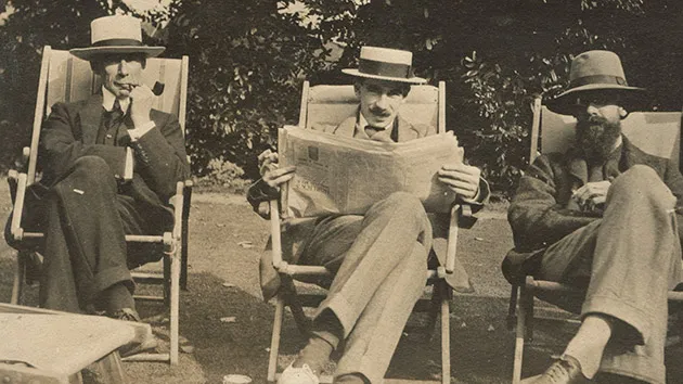 威廉·拉塞尔、凯恩斯和利顿·斯特雷奇于1915年摄影:伦敦国家肖像馆