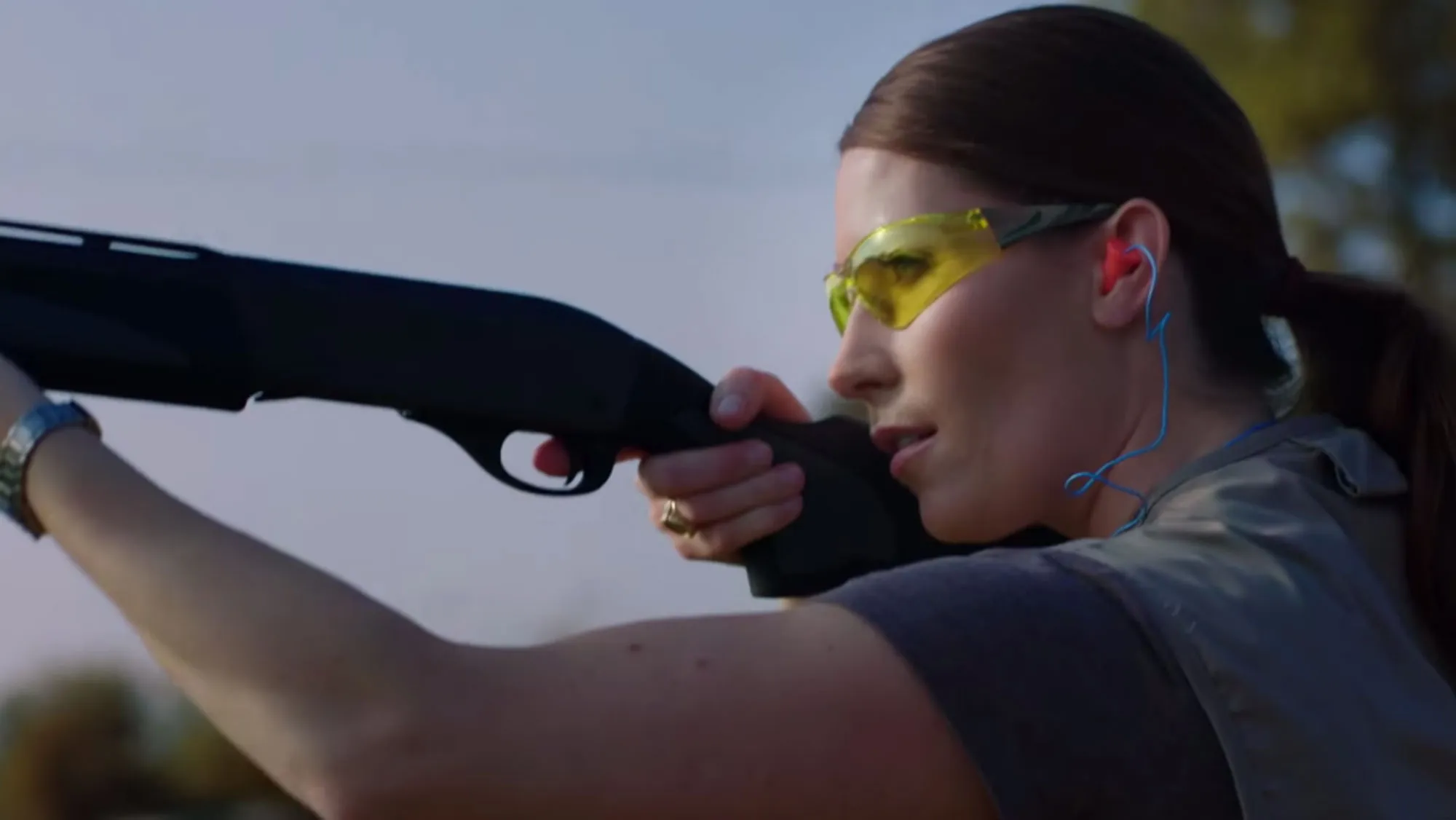 阿莉森·伦德根·格赖姆斯在一段竞选视频中射击飞碟。