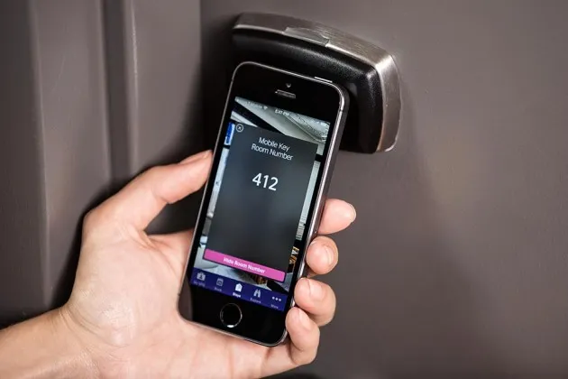 它的工作原理是:万豪“优先客户”通过应用程序注册他们的手机。在抵达无钥匙酒店之前,他们会收到一条消息,告知他们已办理入住,应用程序将在房间准备好时更新房间号和蓝牙钥匙。当他们到达房间时,客人可以打开应用程序,将手机靠近门锁,等待绿灯亮起,然后……打开门。