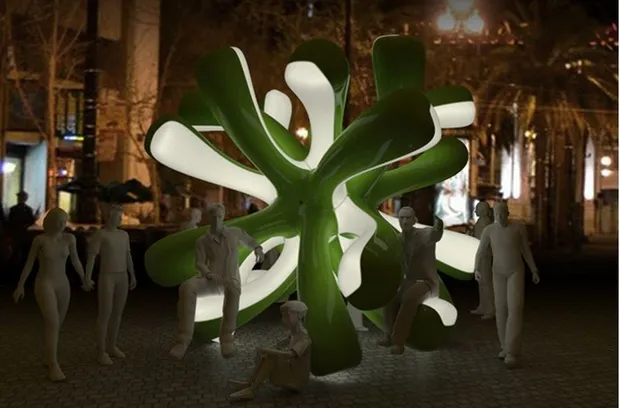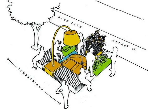 "公共海葵 #1": “倡导与市场街多样人群进行临时、模糊和有趣互动的城市街头家具。”