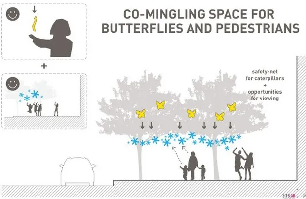 "习惯(在)": 一个“教育安全网,捕捉掉落的西方虎凤蝶幼虫。”