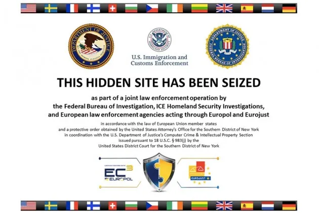 该网站 DeepDotWeb.com 有一张通知的截图,显示了那些试图访问该网站的人现在会弹出的通知。通知上写着:“这个隐藏网站已被作为联合执法行动的一部分被查封,”并带有美国司法部和美国移民与海关执法局的标志。根据DeepDotWeb.com的说法,这可能是针对在“暗网”上运营的黑市的更广泛打击(这些网站故意不让普通搜索工具和浏览器访问)。该网站指出,其他几个地下在线市场也已关闭。