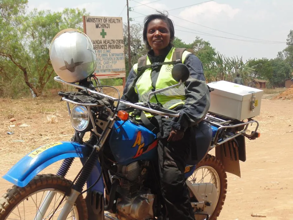 一名快递员在马拉维乡村的一个设施等待取样,送往主要的地区实验室。由伊丽莎白·格拉泽儿童艾滋病基金会和健康骑士提供在马拉维,摩托车可以迅速穿越狭窄的非铺装小路,轻松越过灌木丛和小溪,抵达HIV阳性患者。因此, 健康骑士和 伊丽莎白·格拉泽儿童艾滋病基金会正在利用它们,真正突破马拉维北部和中部地区的医疗瓶颈。