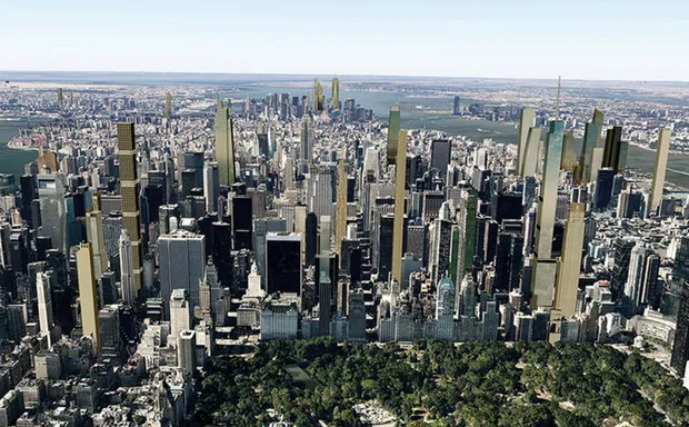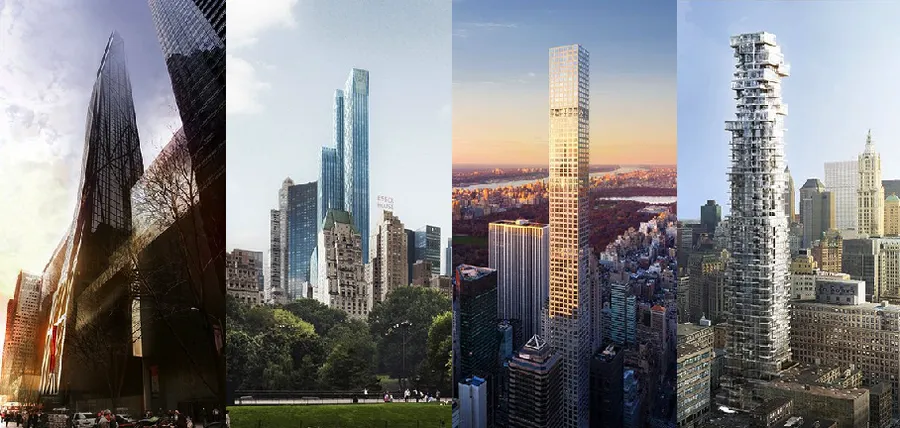 左起:53W53;One57;由拉斐尔·维诺利建筑师设计的432公园大道(Macklowe/CIM集团);由赫尔佐格与德梅隆设计的56伦纳德海因斯/亚历克西科集团CityRealty的渲染图包括这两个项目和至少二十多个项目,其中大多数是 聚集在中城备受诟病的亿万富翁大道周围的超级高层建筑。这些并不是迄今为止对各个项目的最佳渲染图,远非如此,但它们确实传达了纽约目前正在形成的摩天大楼热潮的规模。