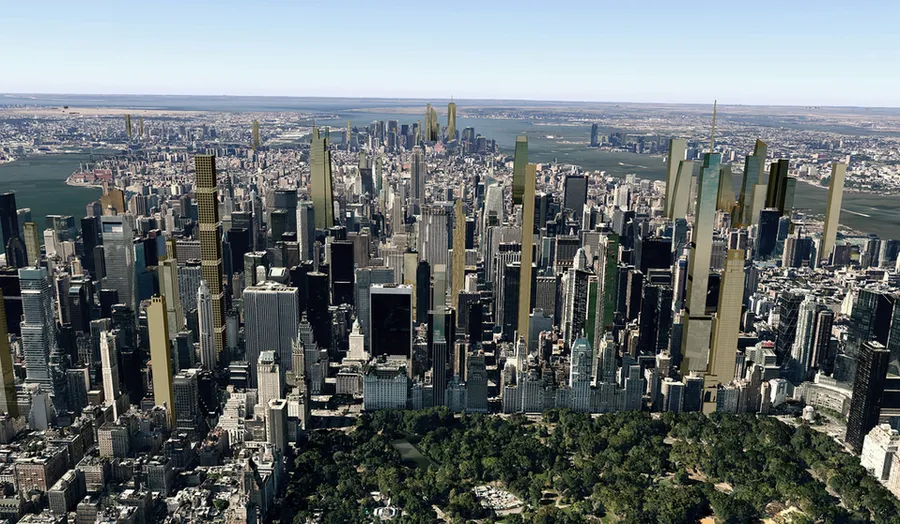 那是诺维尔的摩OMA大厦在53 W. 53rd Street,海因斯开发的项目,计划完工的年份——还有许多其他位于中城的项目。CityRealty刚刚 发布了上面的效果图以推广53W53,并展示2018年曼哈顿的样子,一旦目前在中央公园周围建设或开发的众多项目完成。