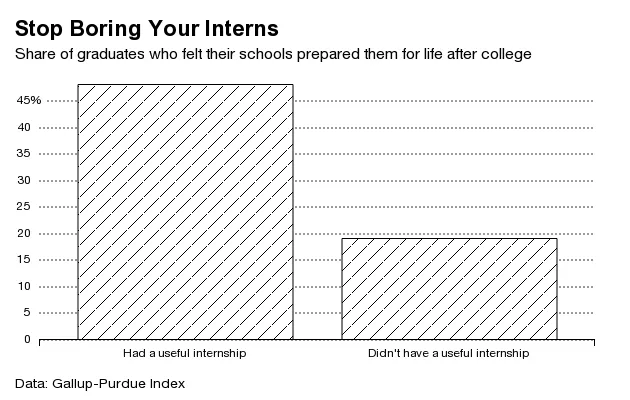 实习,尽管存在所有的 已记录的缺陷,对找到工作很重要。研究表明 显示,获得实习机会——尤其是在 金融、咨询和科技等领域——可能意味着获得工作面试和简历被拒绝之间的差别。除了几乎对提高毕业生的职业机会至关重要外,一项新报告发现,实习对实习生的帮助不大。
