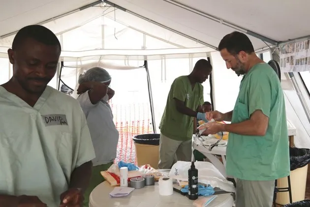 达林·波特诺伊博士在利比里亚蒙罗维亚的ELWA3工作摄影:奥古斯丁·莫拉莱斯/MSF