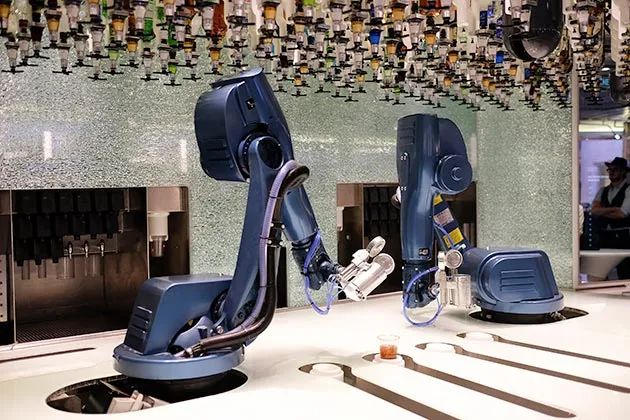 机器人在 量子号游轮 的仿生酒吧为客人准备饮品摄影:西蒙·道森/彭博社