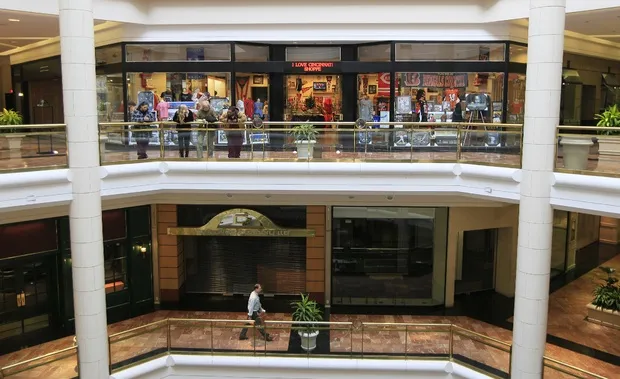 来自2012年11月:塔楼广场购物中心的一层零售店仍然开放,而另一层的几个店面则关闭,位于辛辛那提市中心。美联社照片/阿尔·贝尔曼"城市是一个生态系统,包括管道在内," 科特尼·汉弗莱斯,波士顿环球报