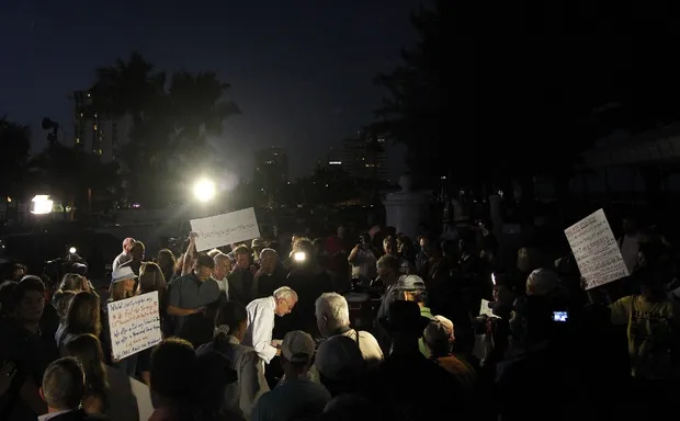 抗议者和媒体在阿博特于11月13日喂养无家可归者的地点集合。安德鲁·伊内拉里蒂/路透社