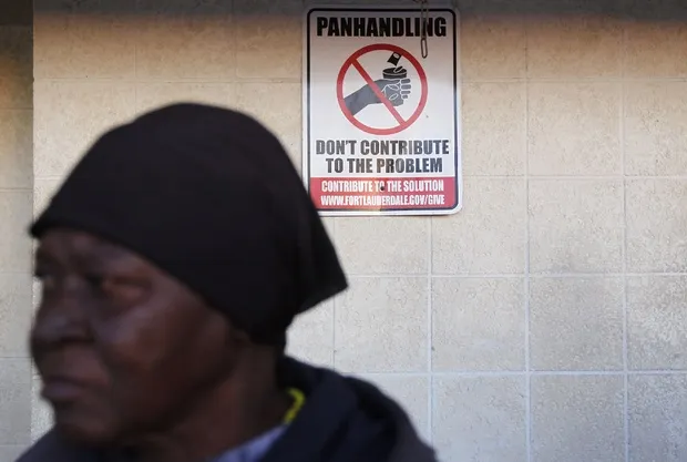 (这是劳德代尔堡通过的最新限制:今年,市委员会还通过了禁止无家可归者 在繁忙路口乞讨、在公共长椅上睡觉或在公共财产上存放个人物品的法律。)