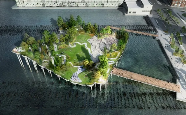 码头55海瑟威克工作室在目前进行中的三个离岸公园方案中,最可行的可能是 码头55。这在很大程度上是因为,如果该计划获得批准,将由迪勒出资1.3亿美元,另有3950万美元来自市政府。随着市长比尔·德布拉西奥 承诺不再建设新公园(而是专注于升级被忽视的社区公园),迪勒的愚行可能成为这一届政府意想不到的建筑瑰宝。