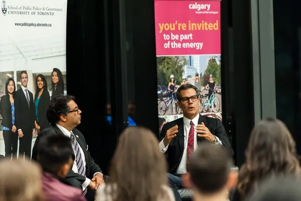 我第一次见到Nenshi是在十多年前,当时他参加了由孟菲斯宣言峰会 [PDF],该峰会由卡罗尔·科莱塔组织。十月份,我有机会再次与他坐下来,作为多伦多大学“大城市,大思想”讲座系列的一部分,该系列由罗特曼管理学院和公共政策与治理学院共同主办。我们讨论了他对城市政策的看法,他的城市面临的机遇和分歧,他用来遏制卡尔加里臭名昭著的郊区扩张的创新方法,以及赋予市长和城市更多权力的必要性。