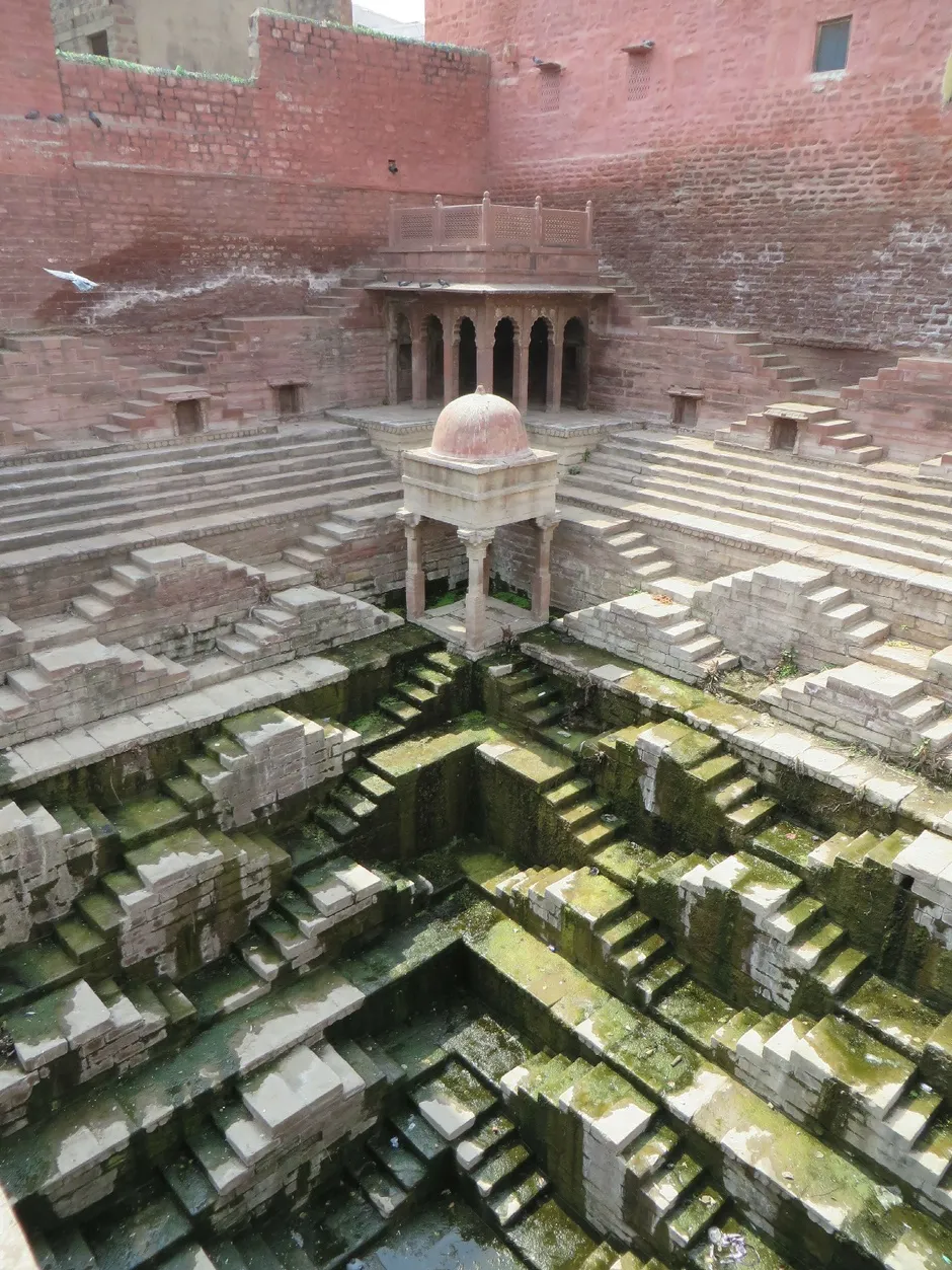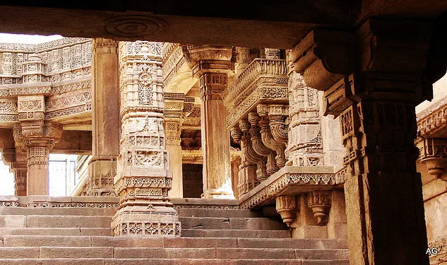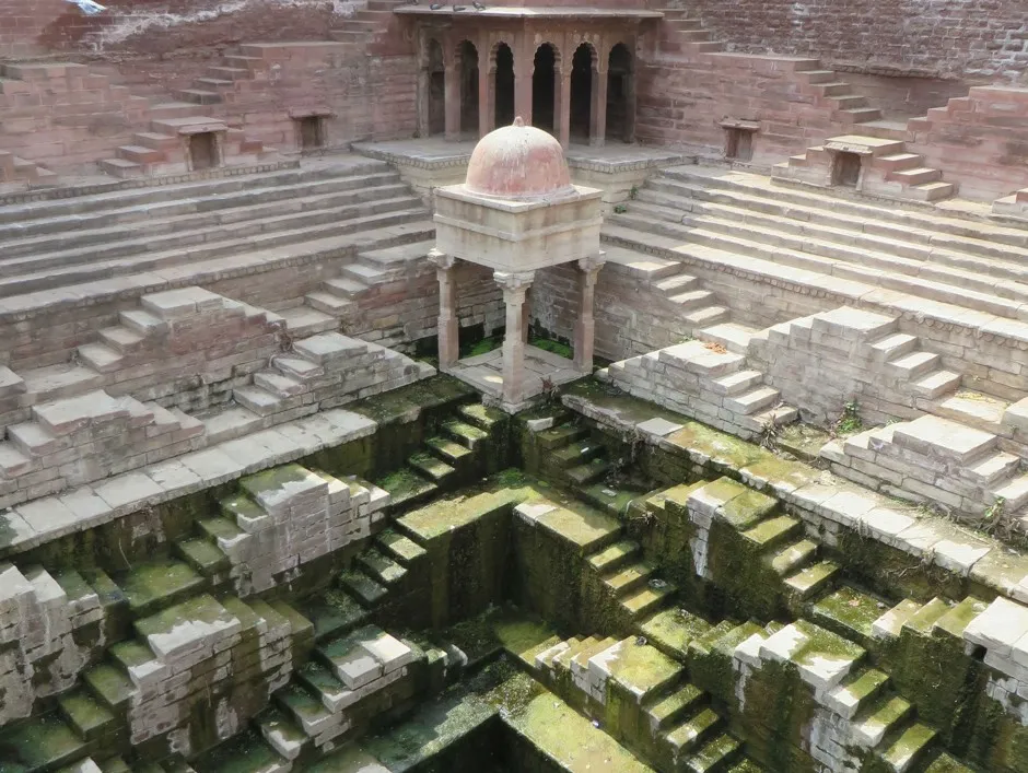 古吉拉特邦帕坦的一个阶梯井。伯纳德·甘戈通过维基媒体共享阶梯井大约在公元四世纪出现,确保了村庄全年有水源供饮用、洗涤和灌溉,特别是在半干旱的古吉拉特邦和拉贾斯坦邦。到11世纪,它们已成为宏伟、风格多样的建筑愿景的画布,并且服务于超越实用的目的。