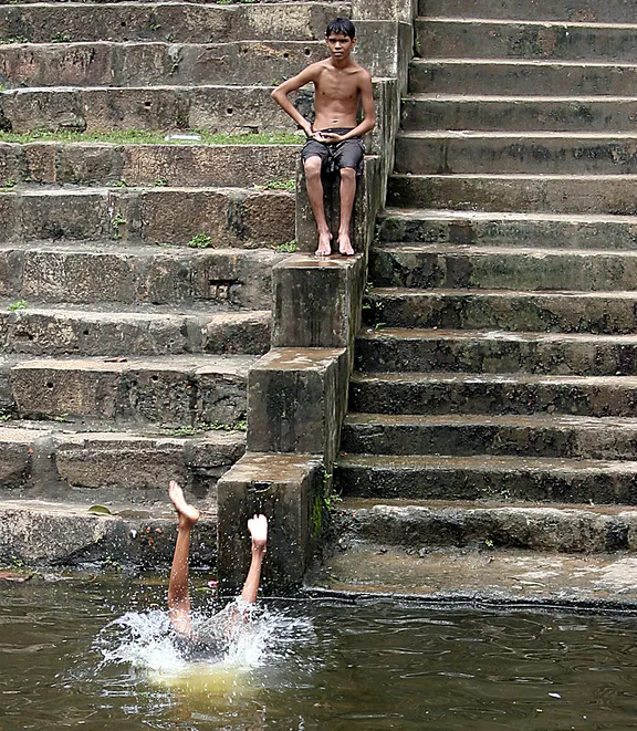 男孩们在阶梯井中游泳。Flickr/卡罗尔·米切尔