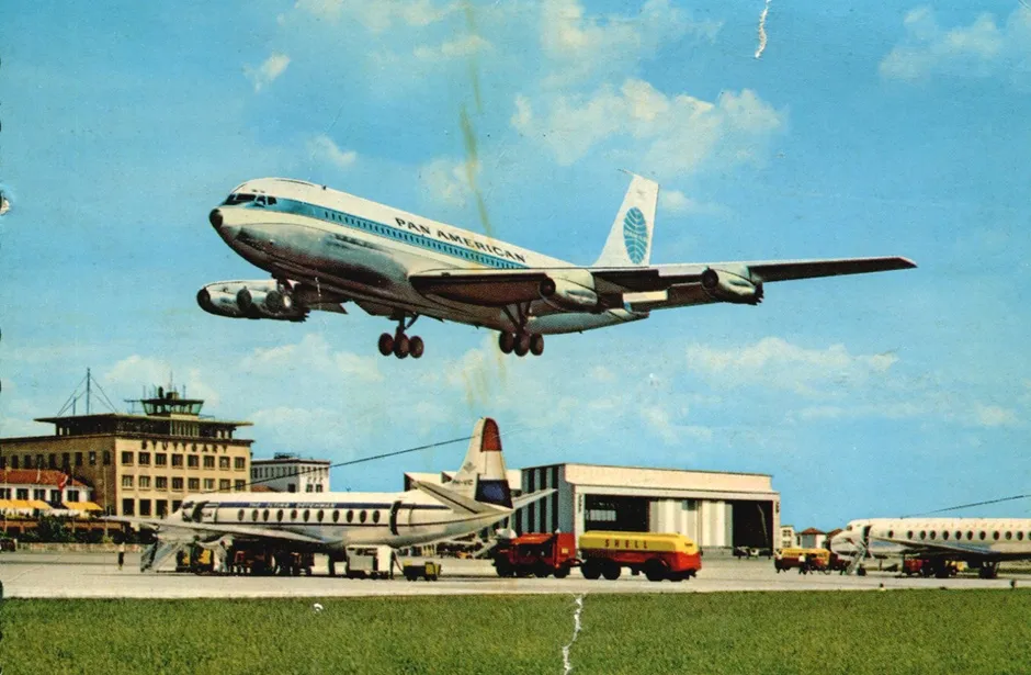 一张来自1960年代的明信片展示了一架泛美航空的波音707在德国斯图加特上空飞行——这种景象让机场餐厅的顾客感到兴奋。Flickr/罗杰·沃尔施塔特但到了1970年代,惠特克说,目的地机场餐厅的全盛时期已经结束。许多机场“无法找到人来签合同经营餐厅。这变得困难[因为机场餐厅]被视为失败者,似乎取决于你是否是枢纽,”她说。问题的一部分?新鲜感已经消退,尤其是在那些乘坐飞机的人中,他们的数量越来越多。事实证明,正如小说家辛克莱·刘易斯在1929年所观察到的那样,“飞机旅行是人类已知的最单调和乏味的旅行方式,除了可能是在平坦的乡村乘坐运河船。”哎。