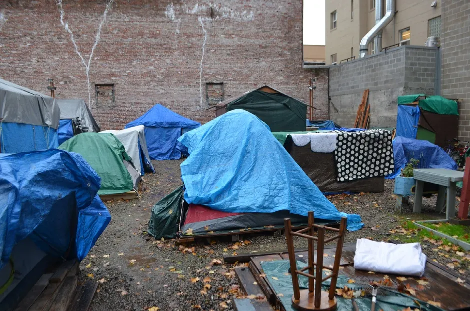 波特兰的旧华埠区,酒吧和夜总会林立,充满了酒精驱动的狂欢和伴随而来的警笛声,几乎不可能找到一个安稳的睡眠地点。但就在区内那座大型装饰性中国拱门的几步之遥,一小群活动人士为人们建立了一个可以过夜的地方。