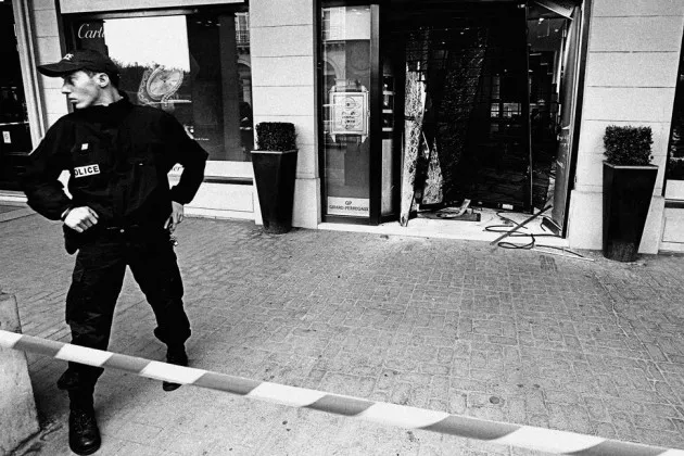 照片由Francois Mor/AP Photo提供11月25日下午,巴黎市中心响起了枪声,两名男子 抢劫了位于香榭丽舍大街附近的一家卡地亚精品店,与警方交火,并骑着摩托车逃走,带走了一批珠宝和镶钻手表。