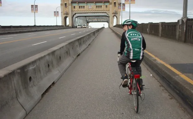 彭博社城市实验室休斯顿附近的管道火灾迫使一些居民撤离旅游布达佩斯区投票禁止类似Airbnb的租赁“买美国”争端风险200英里每小时的铁路从拉斯维加斯到洛杉矶一位艺术家重新想象童年的空间,结果却充满荆棘温哥华的布拉德街桥于1932年开放。它在每个方向上有三条车道,并且两侧有行人步道。这种设计在几十年里运作良好,但随着骑行的普及,它变成了一个安全隐患。骑自行车的人面临两个糟糕的选择:在街上与汽车同行,冒着被撞的风险,或者在人行道上骑行,冒着将行人推到路上的风险。