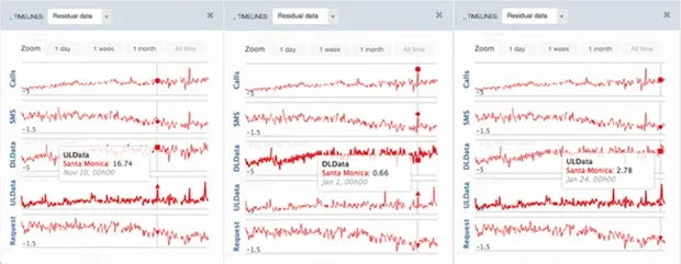 纽约人倾向于在早晨打电话,晚上发短信。爱立信研究博客这个工具不仅可以帮助我们理解一般趋势,还可以了解特定事件如何影响通信。例如,研究人员发现,洛杉矶圣塔莫尼卡地区上传数据流量的两个高峰是因为该地区安排了一场会议和一个“黑客马拉松”。第二个高峰是因为那天是元旦。