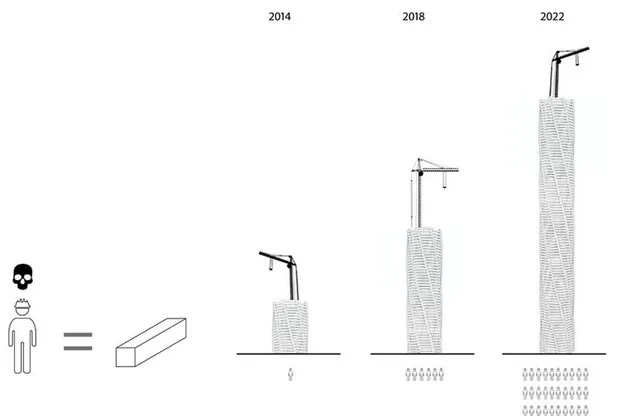 这座建筑为尼泊尔和印度家庭以及其他国籍的家庭提供了一个远离卡塔尔城市和摩天大楼的哀悼场所。该项目有多条参观路线,基于每层四个模块和每个模块两个楼梯。起重机在2022年前保持在高处。