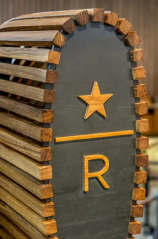 星巴克咖啡公司典型星巴克的拥挤桌子已经不复存在,取而代之的是吧台椅和酿造设备的视野。星巴克帮助广泛传播的“咖啡师”这个词也消失了;在这里为您准备订单的工作人员被称为“咖啡大师”。在一个独立的吧台,这些熟练的工匠为好奇的顾客举办咖啡信息讲座。甚至经典的绿色美人鱼标志也消失了,取而代之的是一个顶部有星星的无衬线R。