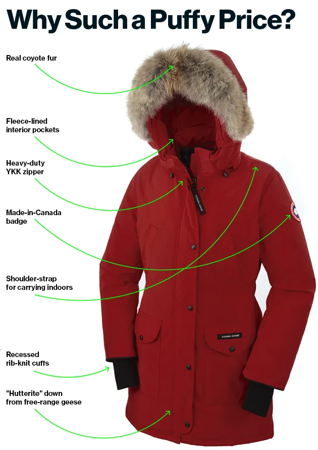 相对较新的品牌如 Mackage 也在利用这一趋势,这是一家总部位于蒙特利尔的品牌,1999年开始销售以羽绒为主的外套。外套的价格在590美元到1150美元之间,通常会用浣熊毛进行装饰。即使是传统的运动品牌如北面(The North Face)和巴塔哥尼亚(Patagonia)也开始向高端市场发展,推出价格高昂的羽绒外套。巴塔哥尼亚的 Fitz Roy夹克 售价为450美元,具有Moncler服装的光泽。北面的喜马拉雅派克大衣售价为 $650。