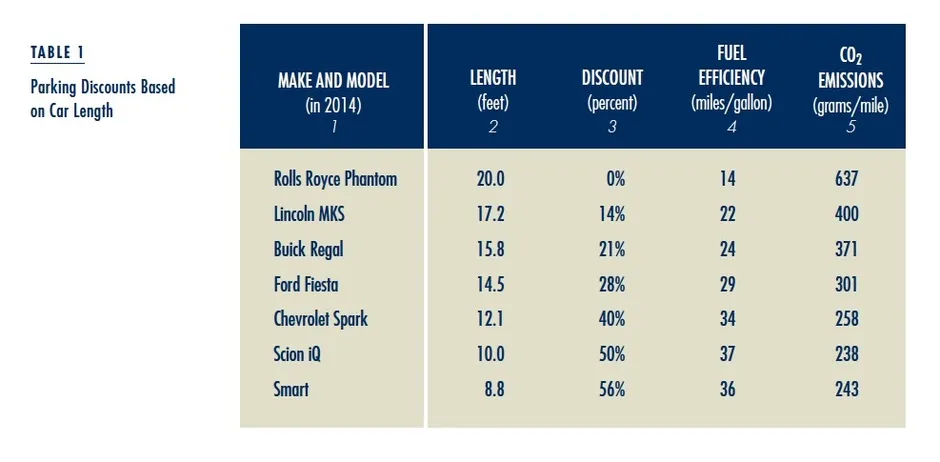既然我们根据排放量对汽车收费,为什么不也根据长度收费呢?毕竟,城市街道上的路边停车位是有限的商品,并不是所有汽车都占用相同的空间。(此外,较短的汽车往往更省油。)Shoup 制定了一个基于长度收费的基本框架,从小巧的 Smart 汽车享受 56% 的折扣到 Rolls Royce 则没有折扣。“大多数能够负担得起更长汽车的人,可能也能负担得起更多的停车费,”他写道。